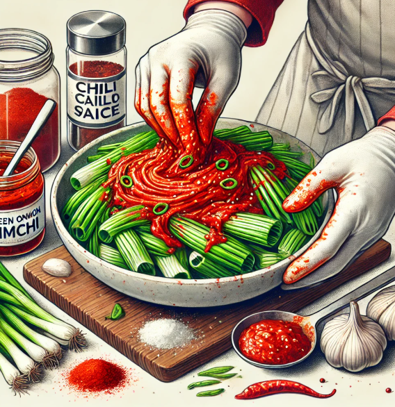 - 쪽파에 양념 버무리기